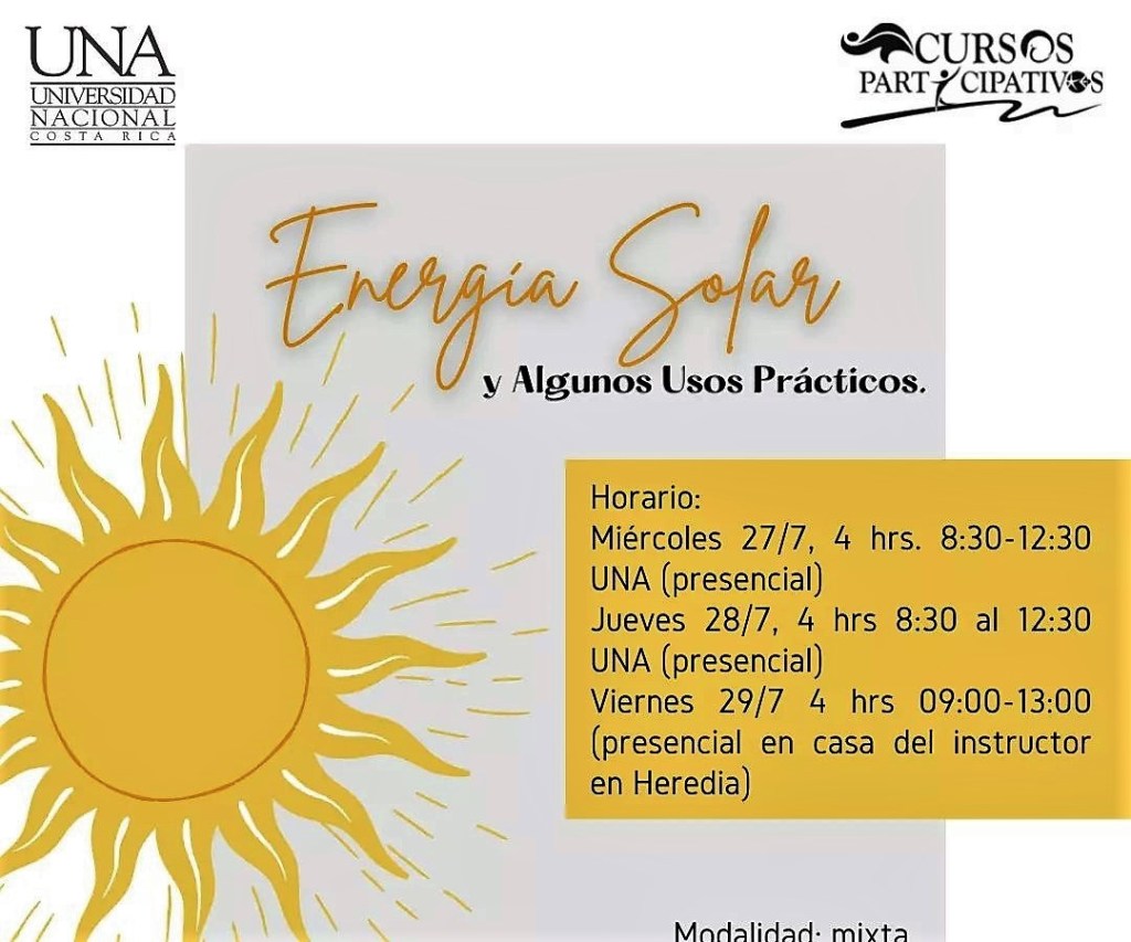 El curso “Energía Solar y Algunos Usos Prácticos.” es una oportunidad para aprender sobre los usos de la energía solar para algunas aplicaciones, en las casas, centros educativos, oficinas etc…